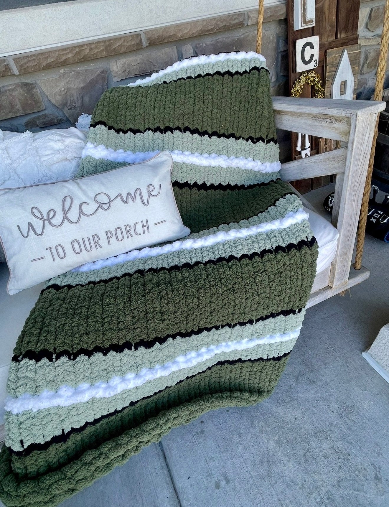 A timeless heirloom chunky knit blanket inspired by mountain forests and cozy cabin porches. Handcrafted with rich evergreen, soft sage,... Read more