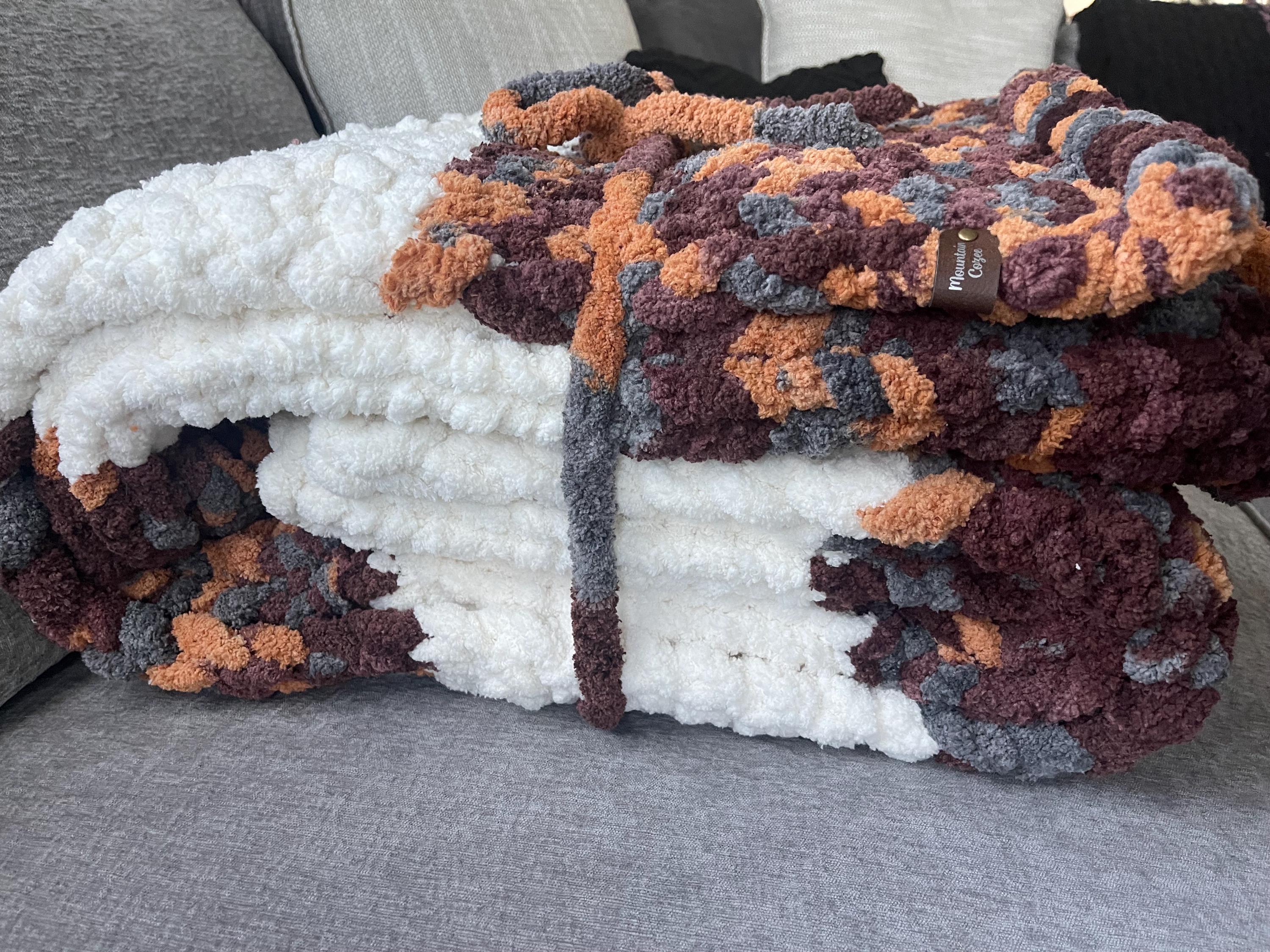 Wrap yourself in the warmth of the mountains with our Cozy Campfire Chunky Knit Blanket — the perfect blend of cozy comfort and earthy charm.