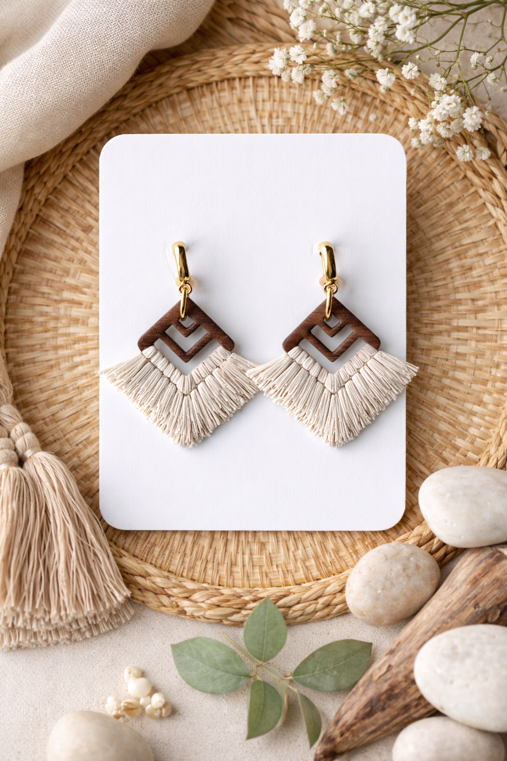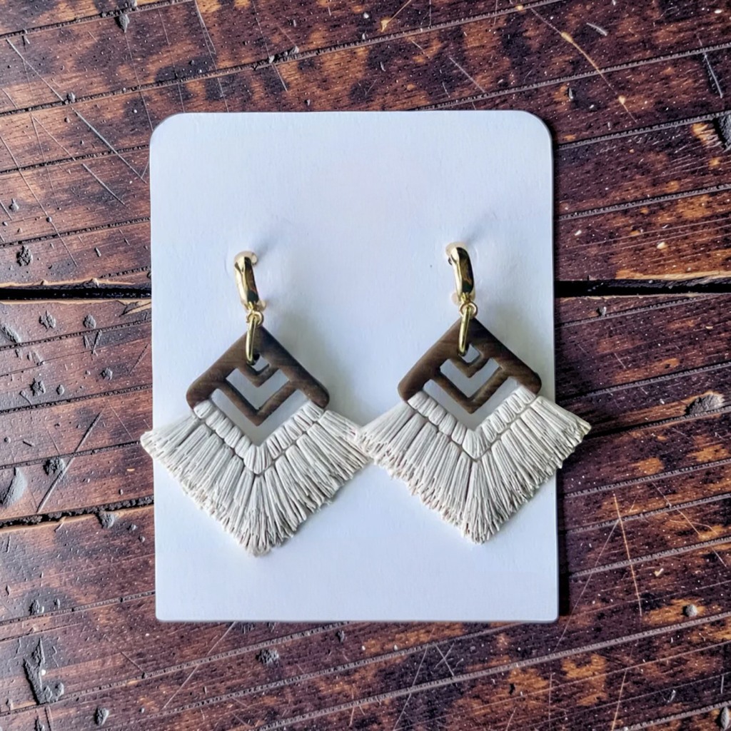 Polymer Clay Fringe Earrings. Bring effortless mountain-boho charm to your everyday style. These handcrafted statement earrings feature rich walnut-toned wood... Read more