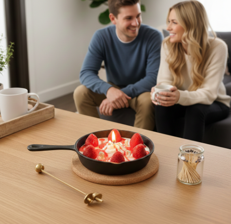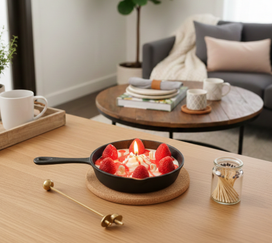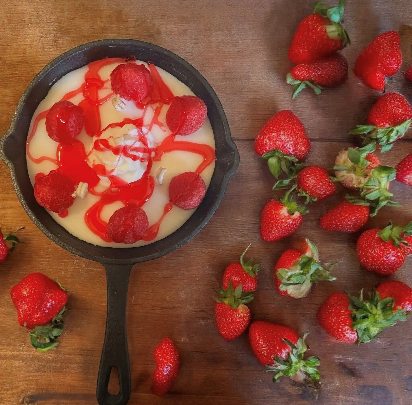 Strawberry Cheesecake Skillet Candle – Dessert Food Candle, Soy Paraffin Blend, Bakery Scented Candle, Unique Gift for Dessert Lovers